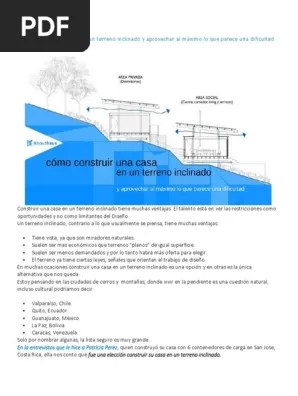 Documentos > trabajos y tareas > arquitectura, obras y construcción. Las vistas que se tienen en una casa construida en terrenos inclinados es un razonamiento muy válido unido a que el clima es más benigno cuando se esta en ese tipo de terrenos y se siente más privacidad en una vivienda en esas condiciones porque ellas se encuentran más retiradas unas de otras, cuando se construye en un terreno en pendiente.en este libro de ideas vamos a presentares algunas. Excelente muestra de diseños que rompen barreras. En mesopotamia, cuando un edificio no servia para nada, o bien se derrumbaba y se construía otro en el mismo lugar o se construía el nuevo edificio encima, gracias a esto, las ciudades de mesopotamia se encontraban elevadas en una especie de colinas.. Los edificios de perímetro libre sólo podrán construirse en terrenos de por lo menos 900 m².